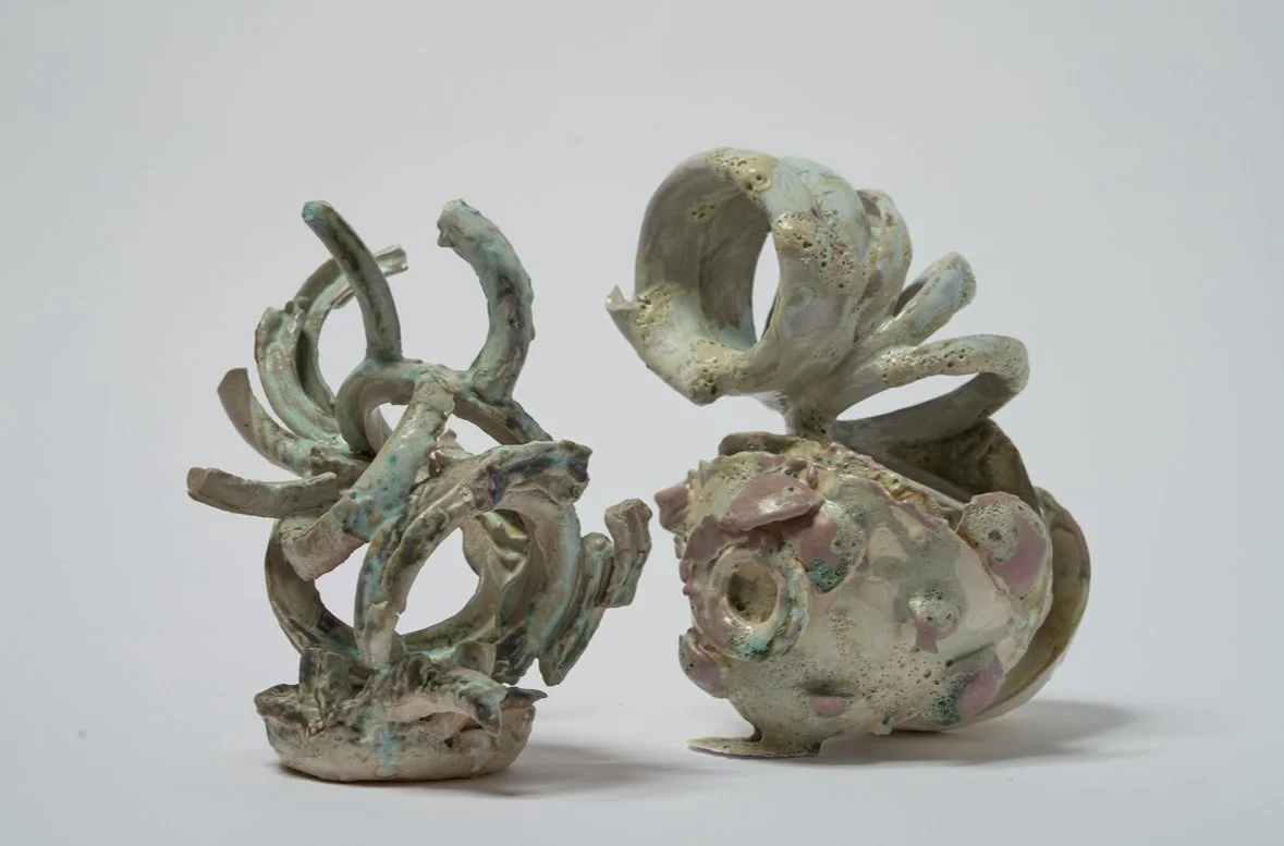With these forms I'm creating what I want to see and be around, exploring escapism's potential forms as elements of a landscape. Paul Donnelly summed this up by saying I want to explore the undiscovered potential we find in ourselves through process by approaching work in a way I wasn't used to.