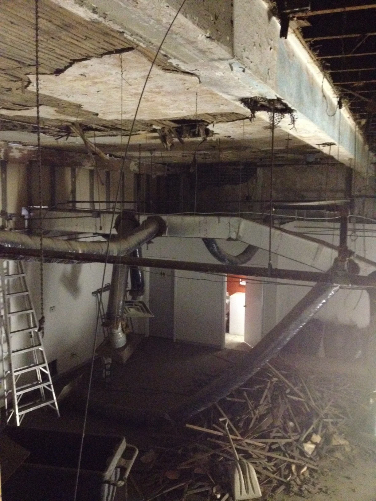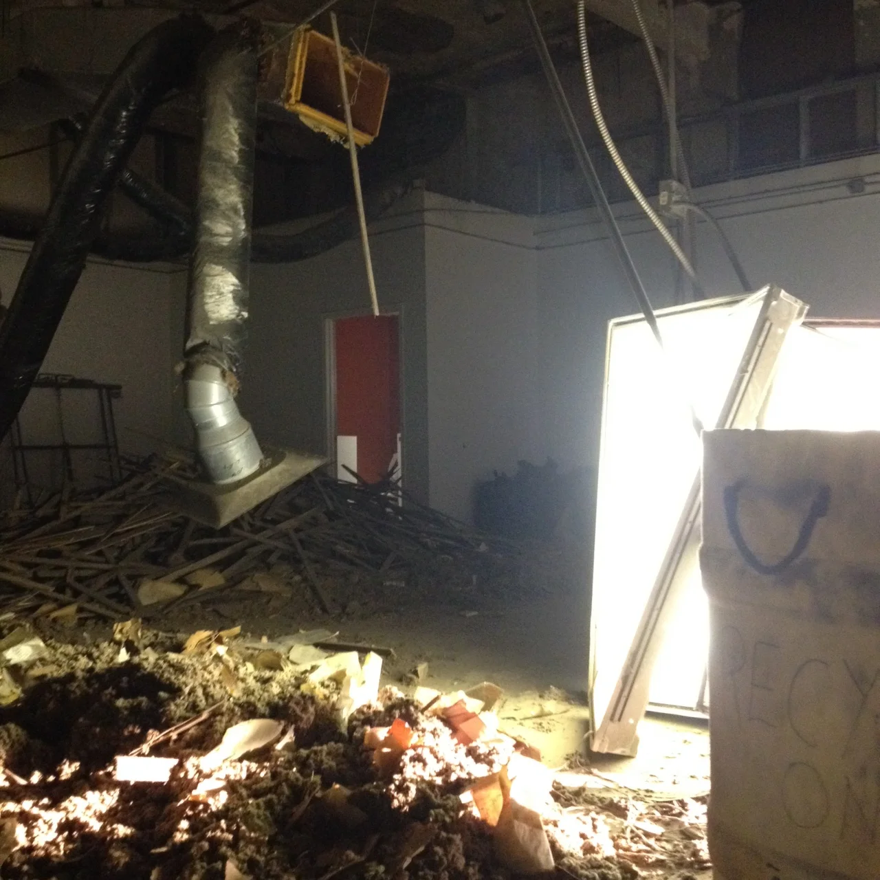 A month ago we began an ambitious overhaul of our gallery space. The aged dropped ceiling has been utterly dismantled, a new dramatic wall built, and the beautiful original 16-foot-tall ceiling exposed. We are beyond excited to debut the new Vulpes Bastille gallery on March 7 for the KCAI Access Alumni Exhibition!